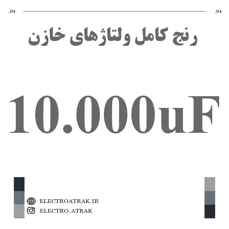 خازن (AC, DC، الکترولیت): “خازنهای الکترونیک اترک، انرژی ذخیره شده برای پروژههای شما. خازنهای AC و DC، به ویژه الکترولیت، برای کاربردهای مختلف با ظرفیتها و ولتاژهای گوناگون.”