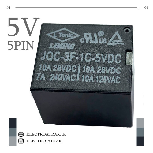 رله 5 ولت تک کنتاکت میلون 10 آمپر 5 پایه JQC-3F-1C-5VDCناموجود