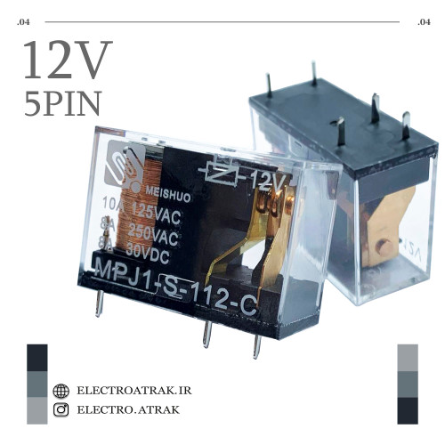 رله 12 ولت تک کنتاکت میلون 15 آمپر بزرگ 5 پایه برند MEISHUO MPB-S-112-C