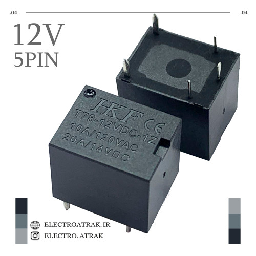 رله 12 ولت تک کنتاکت 5 پایه 10 آمپر HKF T78-12VDC-1Z