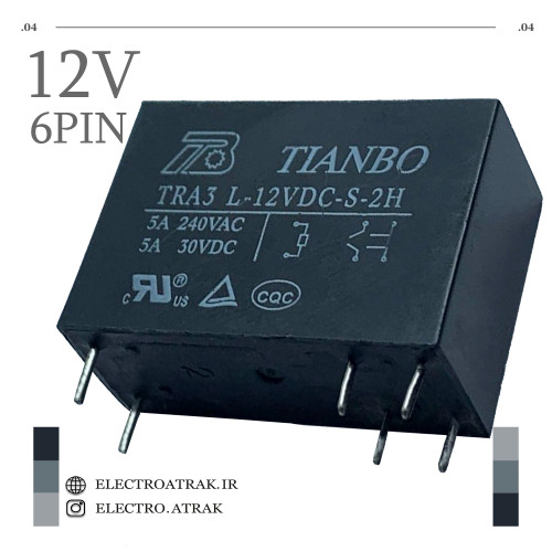 رله 12 ولت دو کنتاکت 6 پین 5 آمپر TIANBOناموجود