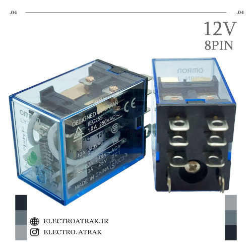 رله 12 ولت دو کنتاکت مکعبی ایزومی پایه سوزنی 10 آمپر 8 پایه برند OMRONناموجود