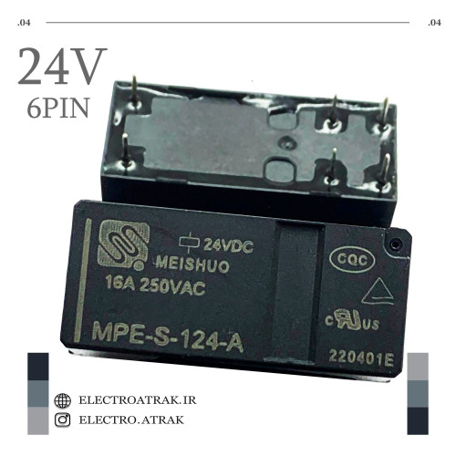 رله 24 ولت تک کنتاکت کتابی 16 آمپر 6 پین برند MEISHUO با کد MPE-S-124-Aناموجود