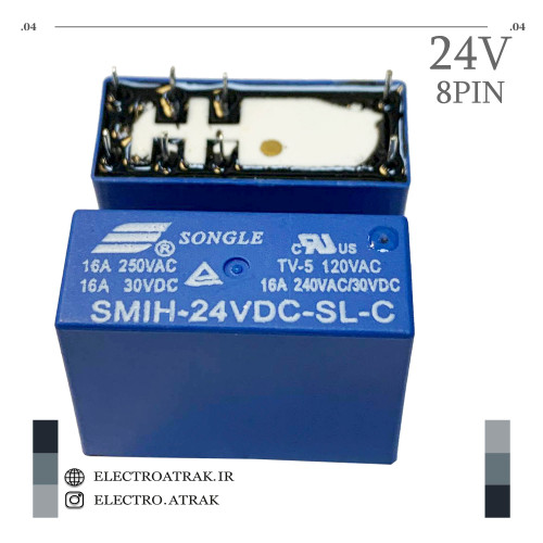 رله24 ولت کتابی 16 آمپر 8 پایه SMIH-24VDC-SL-C برند SONGLEناموجود