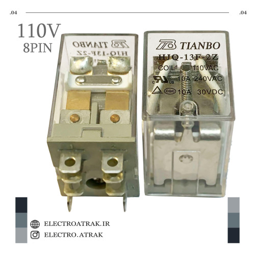 رله 24 ولت دو کنتاکت 10 آمپر 8 پایه سوزنی برند TIANBOتماس بگیرید