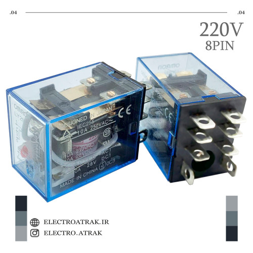 رله 24 ولت دو کنتاکت رله 10 آمپر 8 پایه سوزنی برند OMRON