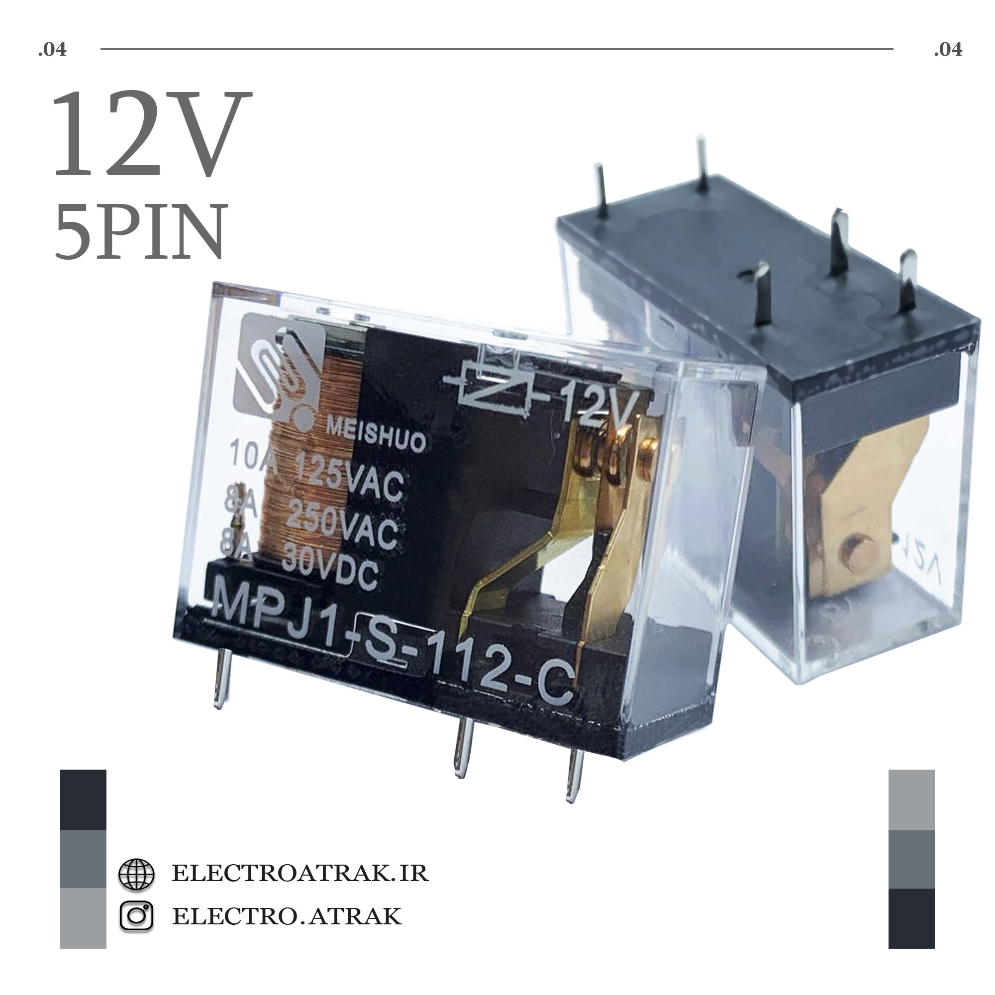 رله 12 ولت تک کنتاکت میلون 15 آمپر بزرگ 5 پایه برند MEISHUO MPB-S-112-C