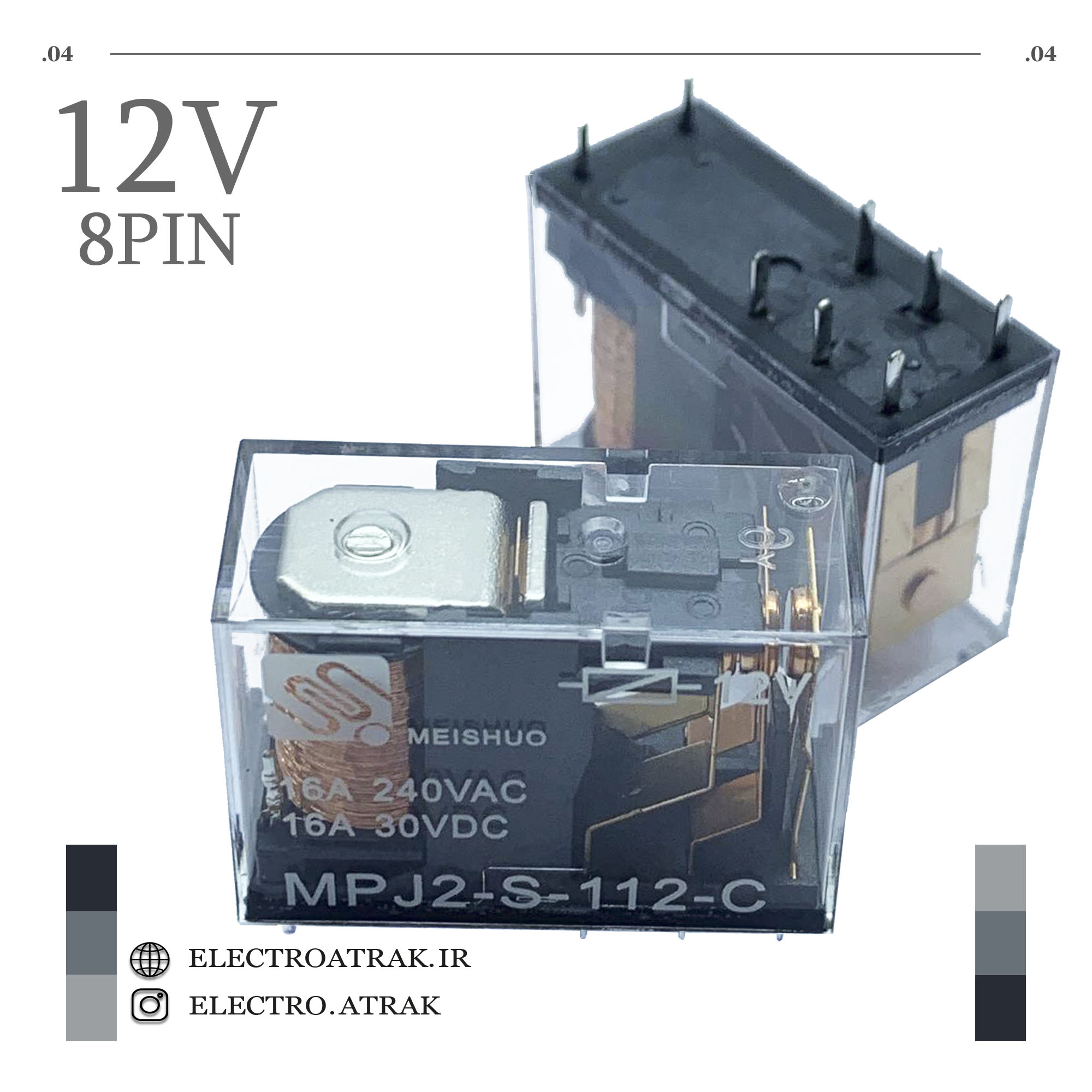 رله 12 ولت تک کنتاکت 8 پایه 16 آمپر برند MEISHUO MPJ2-S-112-C