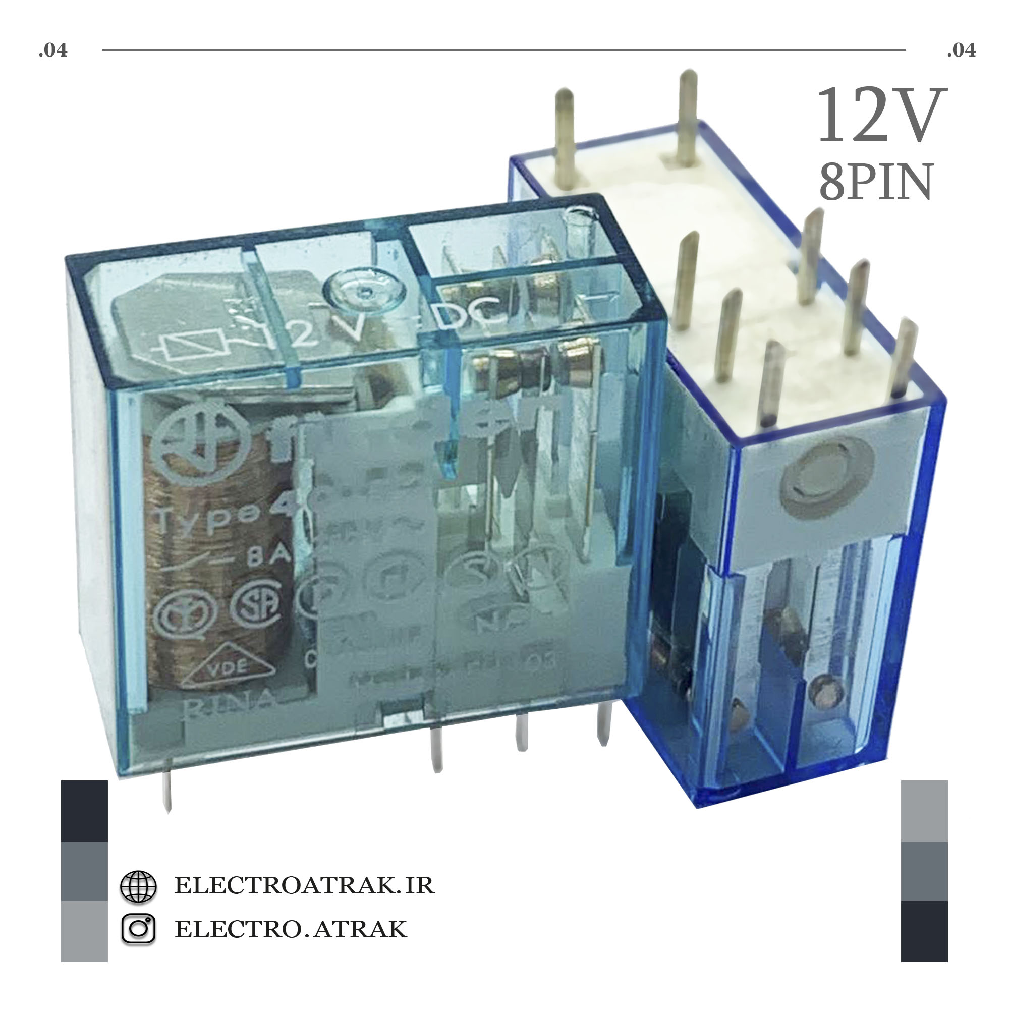 رله 12 ولت دو کنتاکت فیندر 8 آمپر 8 پایه اورجینالناموجود