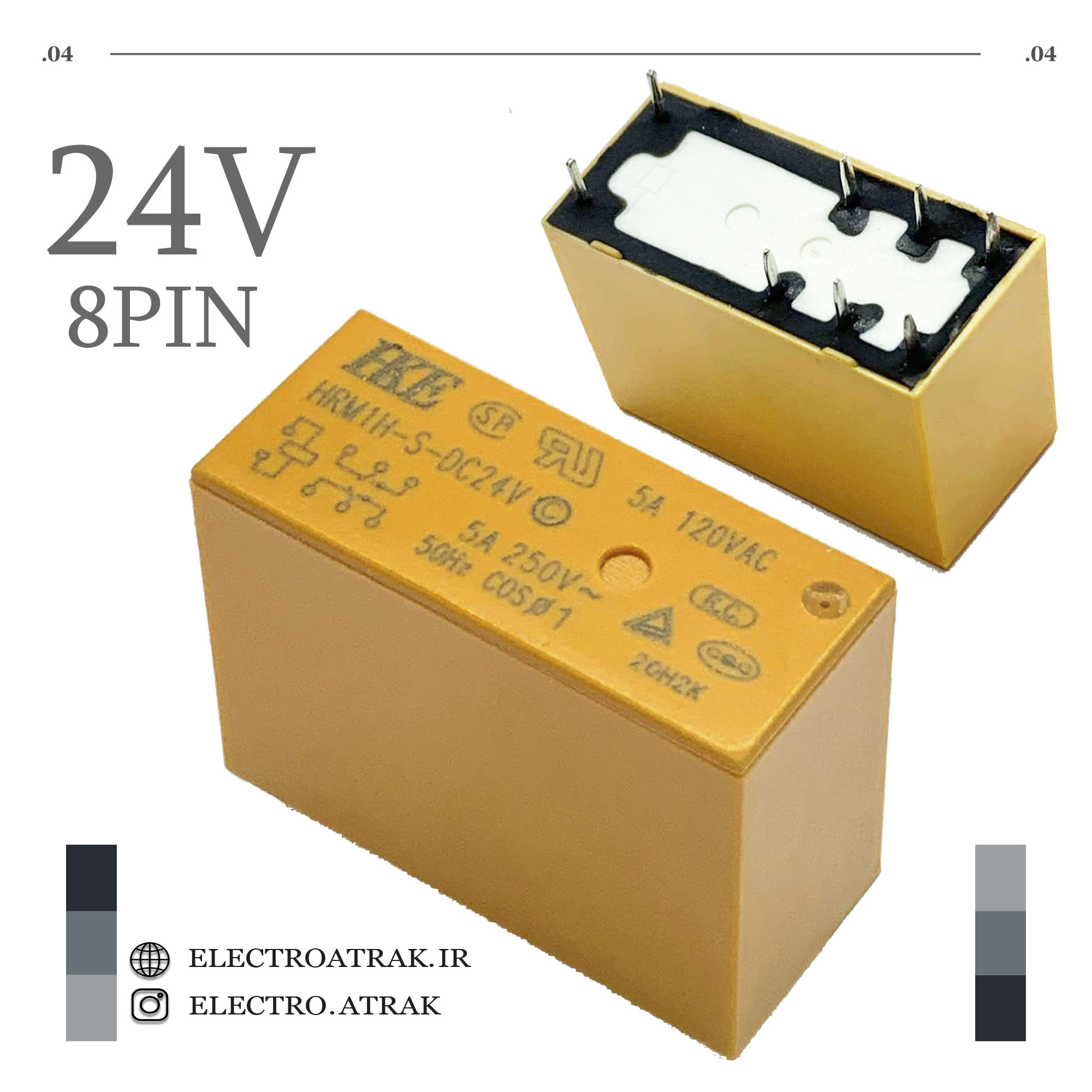 رله 24 ولت دو کنتاکت کتابی 8پین 5آمپر برند HKE کد HRM1H-S-DC24Vناموجود