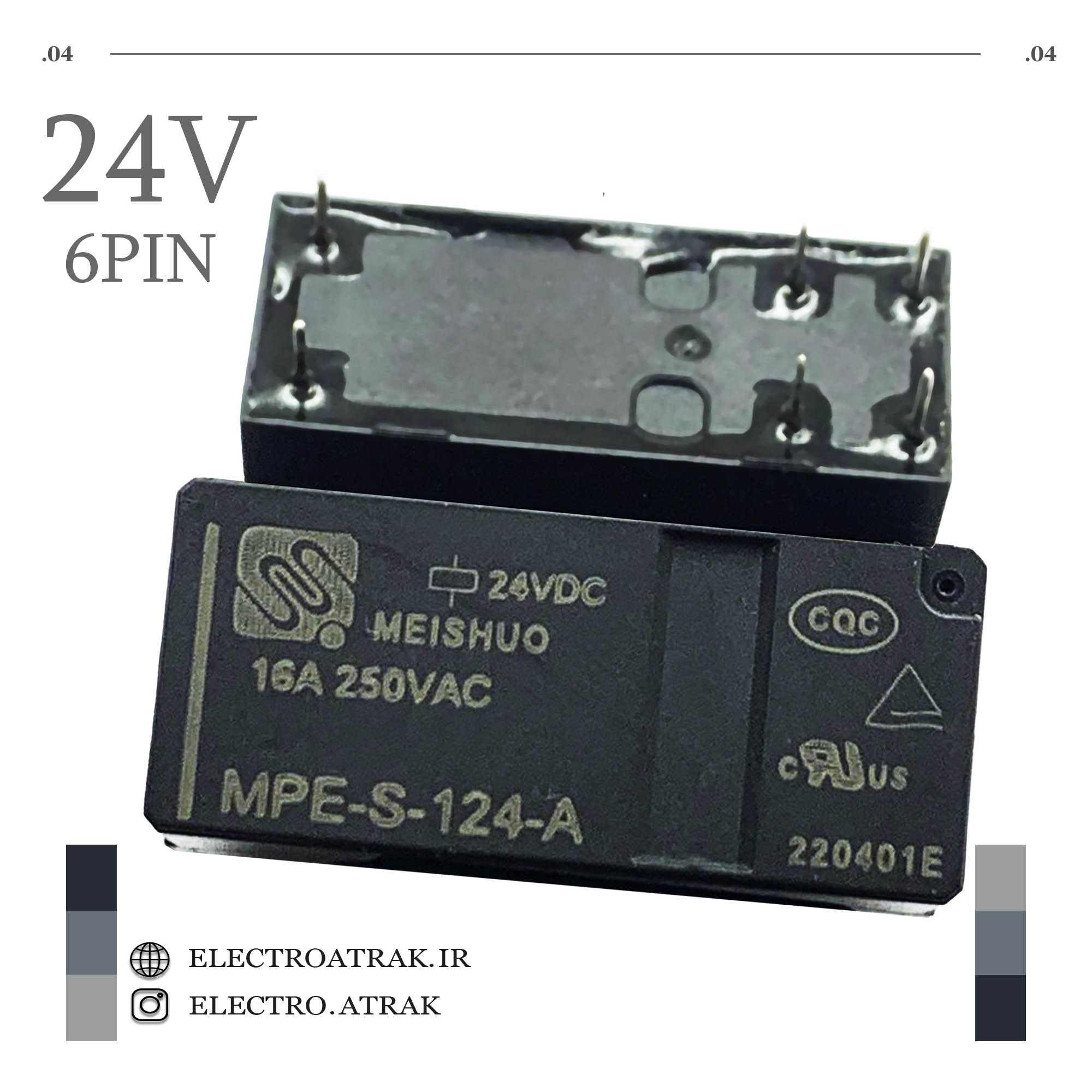 رله 24 ولت تک کنتاکت کتابی 16 آمپر 6 پین برند MEISHUO با کد MPE-S-124-Aناموجود
