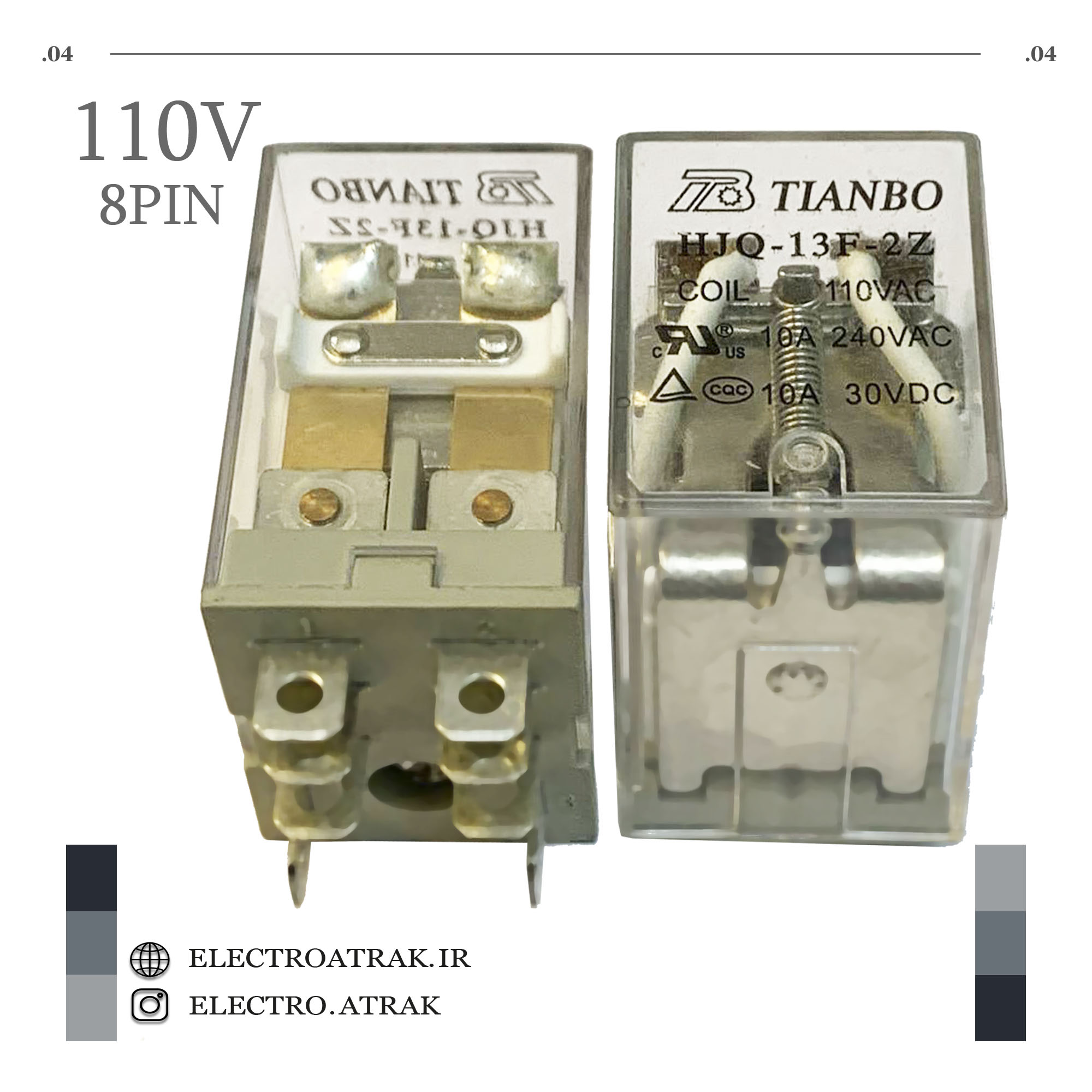 رله 24 ولت دو کنتاکت 10 آمپر 8 پایه سوزنی برند TIANBO