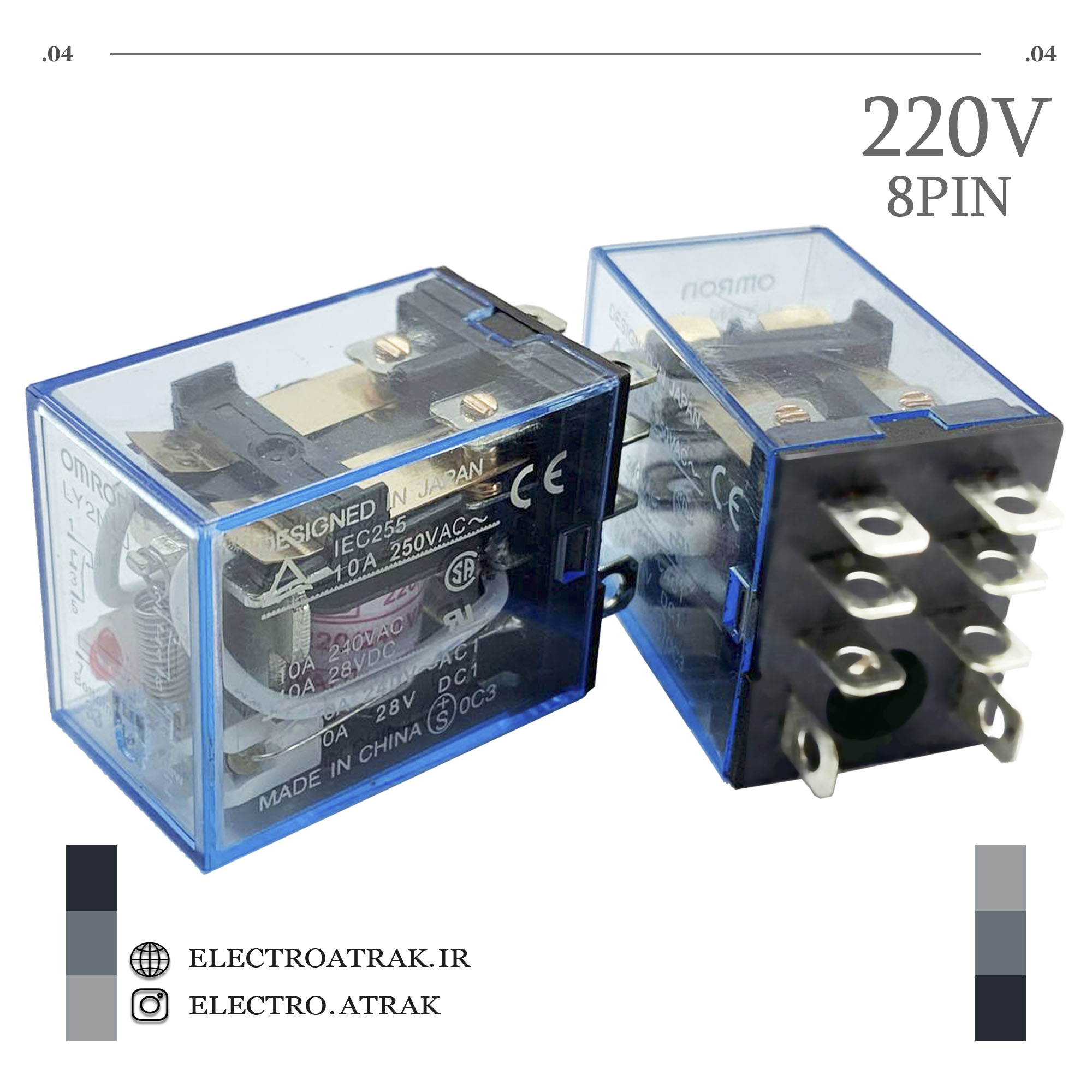 رله 24 ولت دو کنتاکت رله 10 آمپر 8 پایه سوزنی برند OMRON