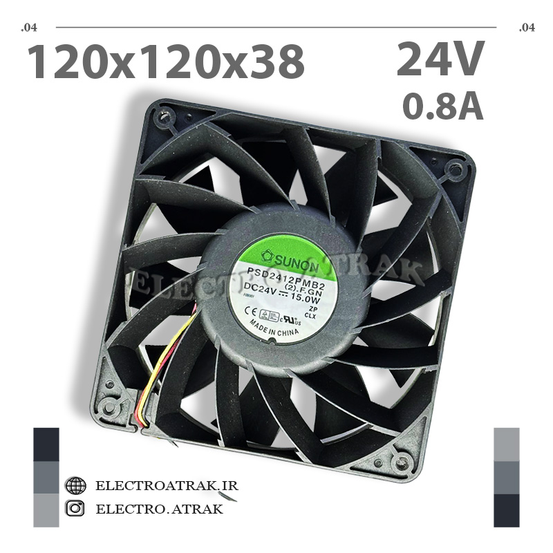 فن 24 ولت SUNON با ابعاد 12x12x3.8 سانتیمتر