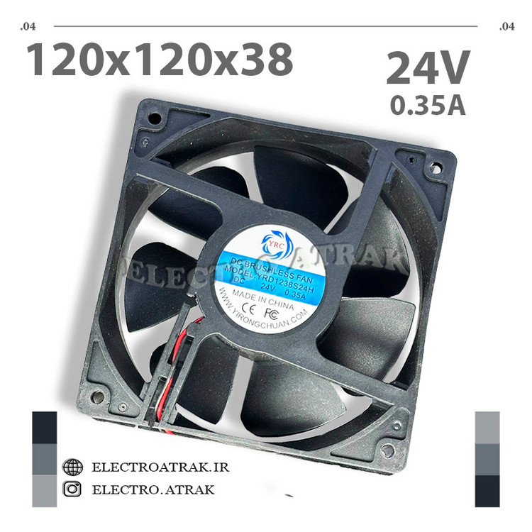 فن 24 ولت 0.35 آمپر 12*12*3.8 سانتی متر بلبرینگی برند YRC