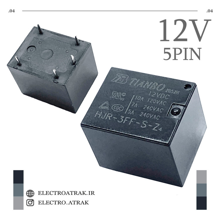 رله 12 ولت تک کنتاکت 5 پایه 10 آمپر برند TIANBO