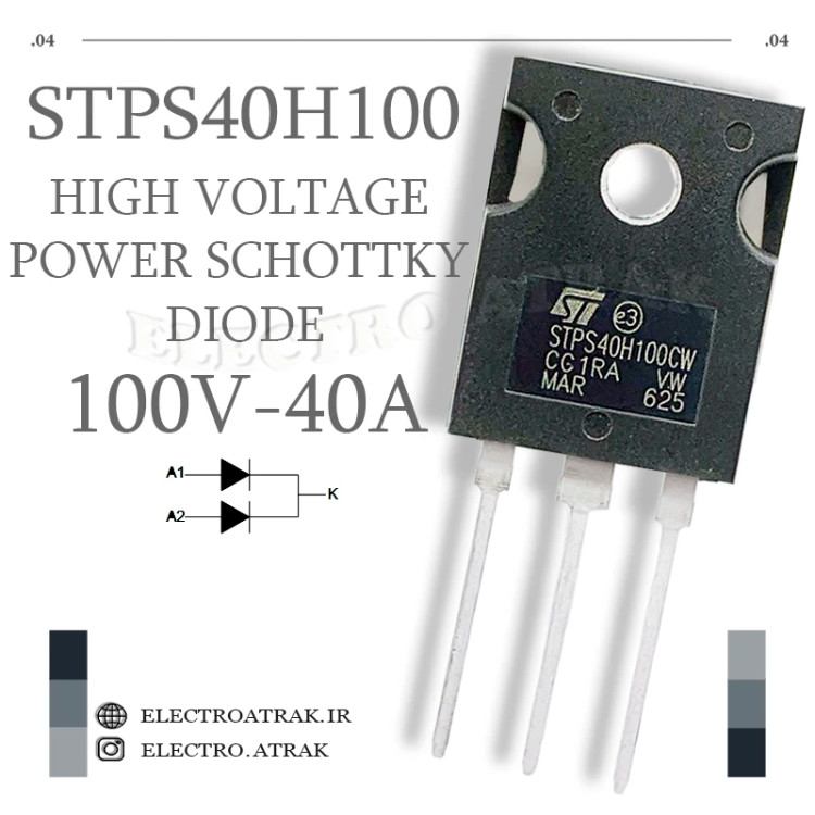 دیود شاتکی ولتاژ بالا STPS40H100CW پکیج TO-247
