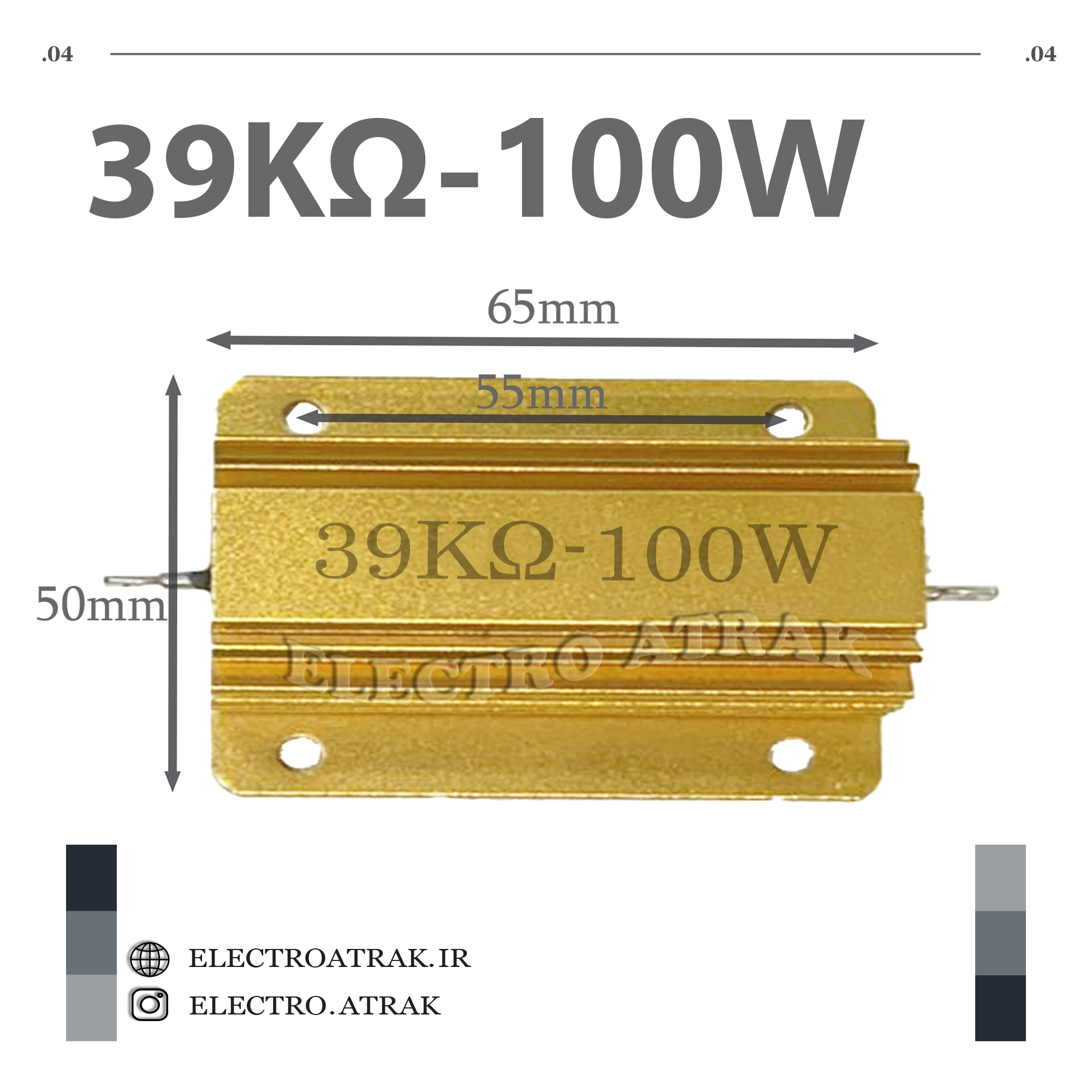 مقاومت فلزی 39 کیلو اهم 100 وات اورجینال