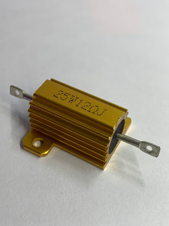 مقاومت فلزی 12R اهم ۲۵وات یک عنصر الکترونیکی دوپایه است که مطابق قانون اهم هنگامی که جریان الکتریکی از آن عبور کند بین پایه هایش اختلاف ولتاژ ایجاد میشود و بمنظور کم نمودن و تقسیم ولتاژ و جریان مورد استفاده قرار میگیرد .