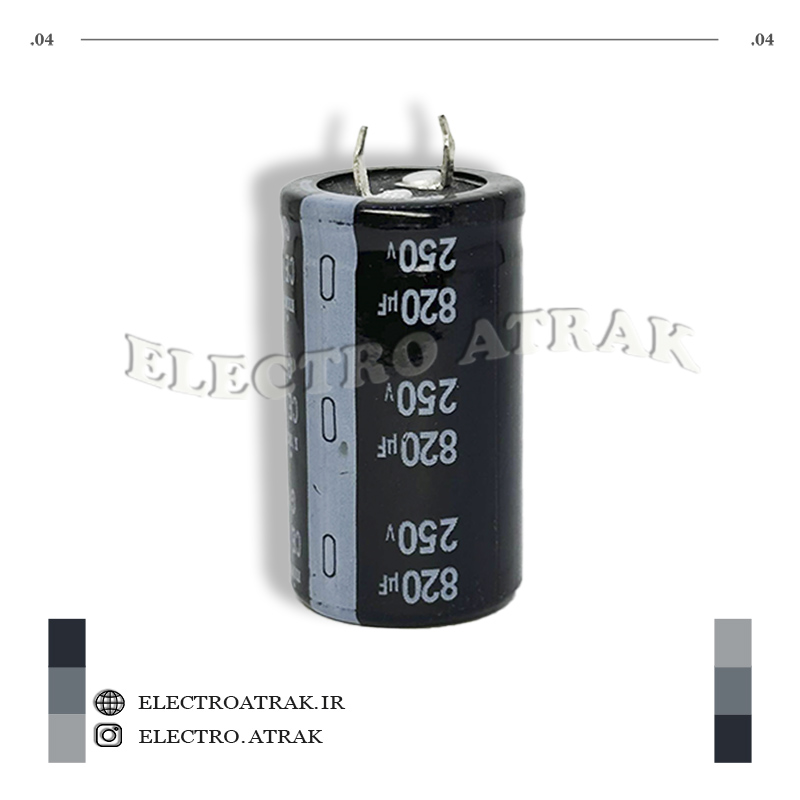 خازن 820 میکروفاراد الکترولیت در تمام ولتاژها و مقادیر