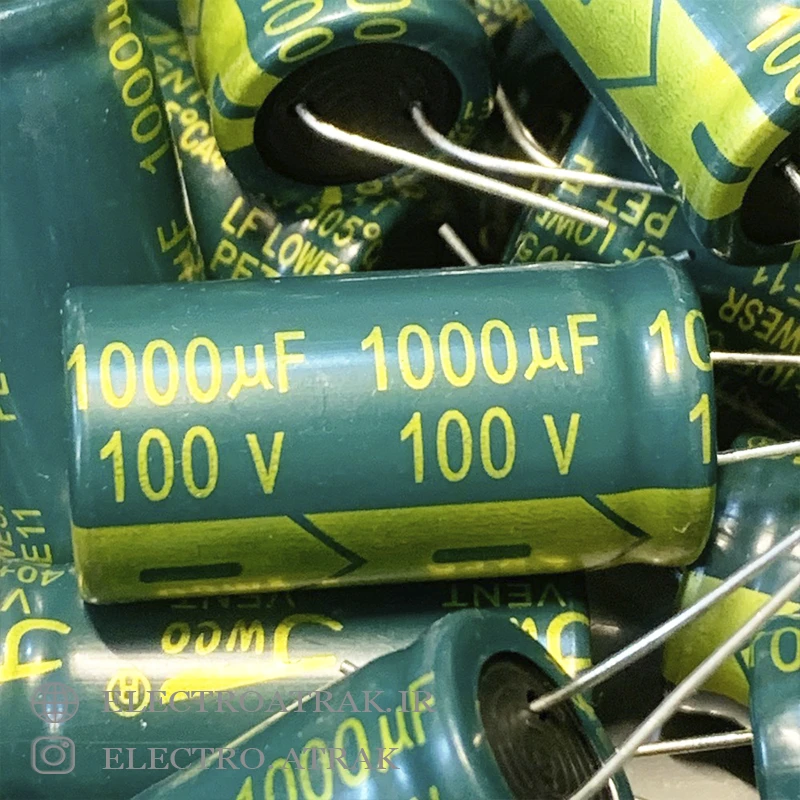 این خازن با ظرفیت 1000 میکروفاراد و در ولتاژ های 6.3 ولت ، 10 ولت ، 16 ولت ، 25 ولت ، 35 ولت ،50 ولت ، 63 ولت ، 100 ولت ، 200 ولت ، 250 ولت ، 400 ولت ، 450 ولت نوع الکترولیت آلومینیومی، برای استفاده در مدارهای الکترونیکی مختلف مانند مدارهای صوتی، فیلترها و منبع تغذیه ایدهآل است.