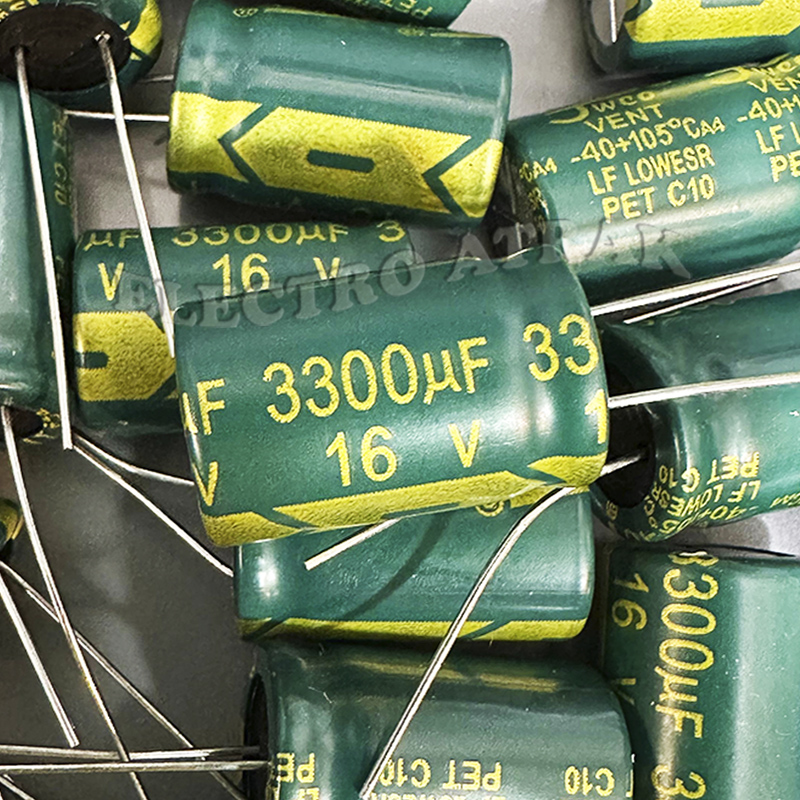 این خازن با ظرفیت 3300 میکروفاراد و در ولتاژ های 6.3 ولت ، 10 ولت ، 16 ولت ، 25 ولت ، 35 ولت ،50 ولت ، 63 ولت ، 100 ولت ، 200 ولت ، 250 ولت ، 400 ولت ، 450 ولت نوع الکترولیت آلومینیومی، برای استفاده در مدارهای الکترونیکی مختلف مانند مدارهای صوتی، فیلترها و منبع تغذیه ایدهآل است.