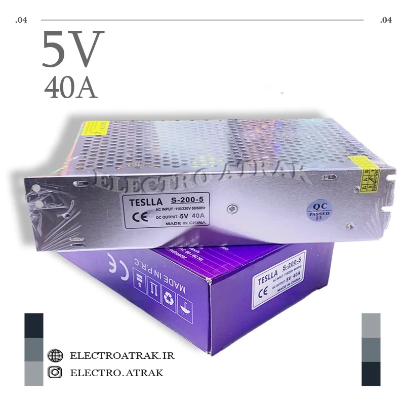 منبع تغذیه سوئیچینگ 5 ولت 40 آمپر برند تسلا